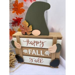 -Coordinating âHappy Fall Yâallâ wooden sign with gnome detail