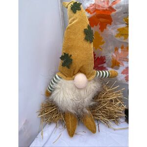 Celebrate the cozy season with this charming fall gnome dĂ©cor bundle! Includes a plush gnome with mustard-yellow hat adorned with felt leaves, striped sleeves, faux fur beard, and hidden LED light feature for a warm glow. He sits perfectly on a straw accent, ready for your entryway, mantle, or seasonal centerpiece. Paired with a wooden âHappy Fall Yâallâ gnome sign and a set of colorful autumn leaf gel clings for windows, this set instantly creates a festive harvest atmosphere.