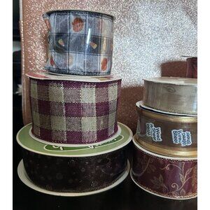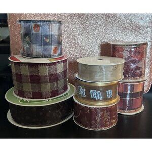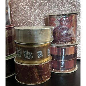 Fall Harvest Halloween Pumpkin Wired Ribbon Lot of 8 Spools Mixed Variety