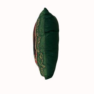 This pillow tells a story of autumn’s vibrant charm, showcasing a tapestry design with pumpkins, gourds, and falling leaves. The deep green cotton backing complements the festive front, adding a touch of warmth to any cozy corner. Let it bring the essence of the harvest season into your space.