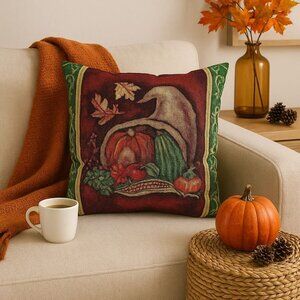 Fall Harvest Tapestry Throw Pillow Autumn Thanksgiving Decor Cornucopia Pumpkin
