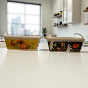 Whimsical bakeware with autumn motifs. Ideal for festive baking. Adds charm to your kitchen.