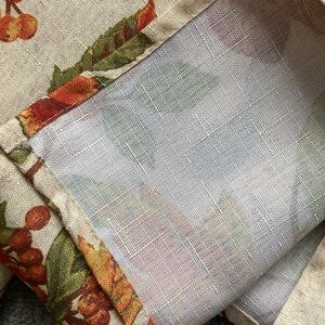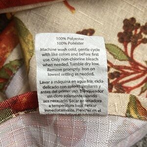 Gently used. Easy to wash. 100% polyester. Fall design. Comes from a pet/smoke free home.