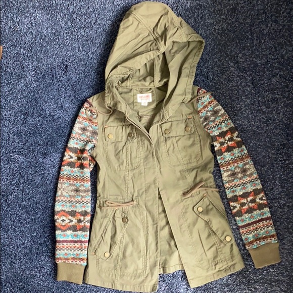 Like new olive unlined utility jacket with cool sleeves