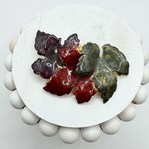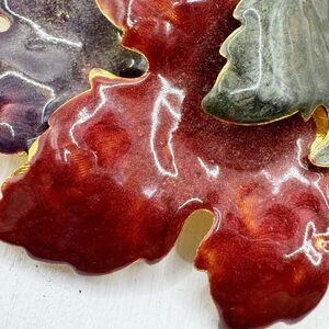 Fall Leaf Cluster Brooch Pin Swirled Enamel Purple Red Green Autumn Large Gold