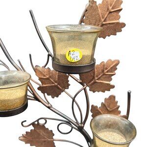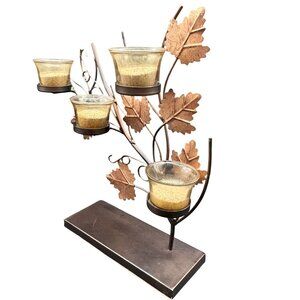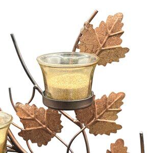 Fall Leaves 14" Metal Tea Light Candle Holder Dining Fireplace Candelabra Decor