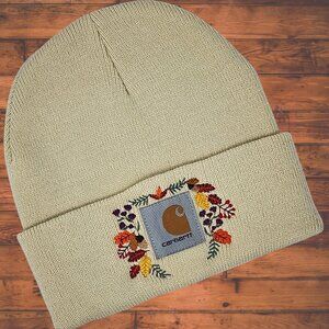 Adult Carhartt Knit Cuffed Beanie beautifully embroidered with colorful fall leaves, acorns, berries and purple flowers. Perfect gift for a special lady. A great look in the cold climate seasons. This Carhartt beanie is fully versatile and can be worn with any style. Constructed from thick acrylic rib-knit yarn, the Adult Carhartt Knit Cuffed Beanie is super soft and incredibly warm on a cold winter day. Plus, the stretchy fabric ensures that this Carhartt beanie stays put all day long.