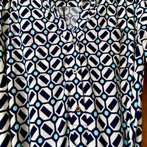 Soft and comfortable midi dress originally purchased via Stitch Fix. Very cute button detail and pockets on chest with a moderate v-neck. Belt at the waist that you can tie in front or back. Can wear from Fall into Winter with an open navy sweater and knee-high boots.