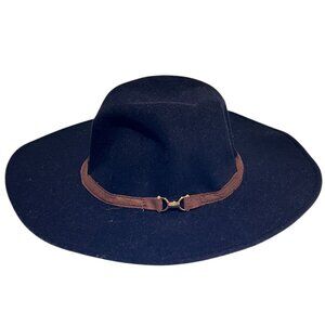 Fall Navy Wool Felt Wide Brim Hat W/Brown Band By Janie and Jack For Kids Sz 6-8