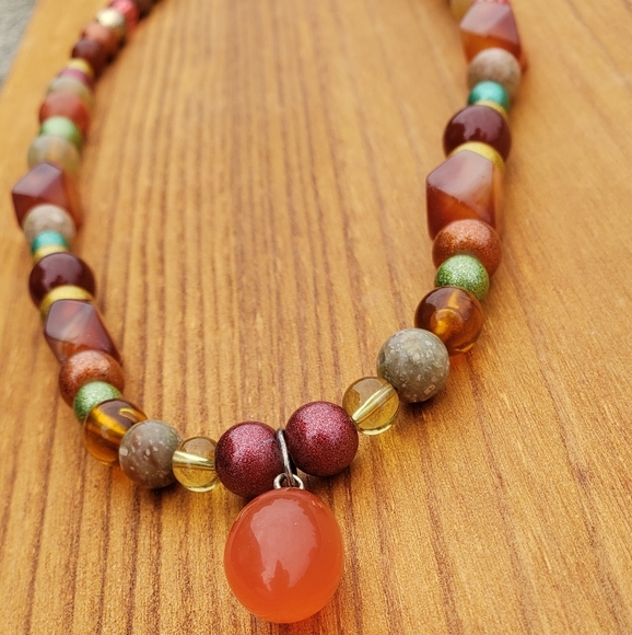 Handmade, blown glass beads,20 1/2" long, glass beads, one of a kind; Autumn necklace only; last picture shows other necklaces in this series.