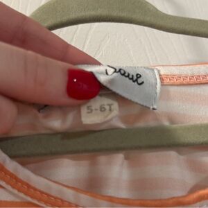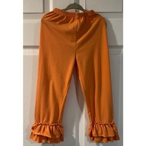 Charming orange striped top with Leopard pattern and ruffle details. Matching orange ruffle pants included.