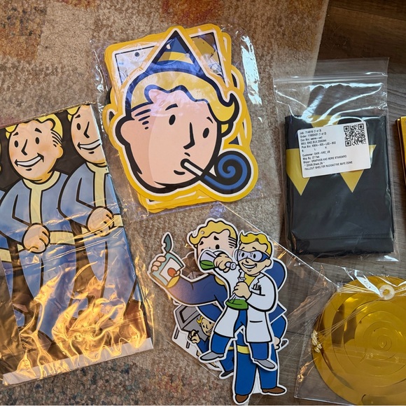 Decorations based on the video game and TV series, Fall Out. Kit includes table cloth, sign, table decorations, a vault bandana, and 3 small gift bags. It’s perfect for any boy (or man’s) birthday party.