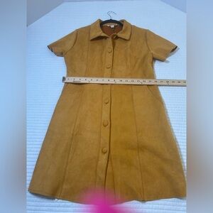 🍂🍁Fall Outfit! Faux Suede Button Up Dress. Gold Color. Short Sleeves. Size M.