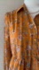 Charming floral button-up dress in a warm orange hue. Features long sleeves and a tiered skirt.