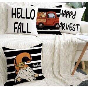Fall Pillow Covers 16x16 Inch Set of 4 Hello Fall Pumpkin Truck Gnome