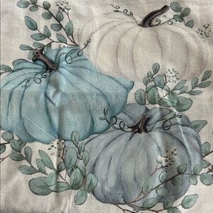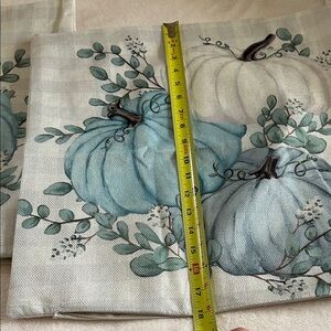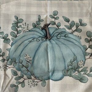 Add a touch of elegance to your Fall Decor with these beautiful blue pumpkin-themed pillow covers. Set of 3. 2 are 18x18. One is 20x12. Made of machine washable Polyester, comfortable & soft touch, no bleeding, fading or fraying issue. Machine wash in cold water separately, gently cycle only, do not bleach. Stays the same and as new, after every wash. Hidden zipper closure. Excellent condition! Considering reasonable offers! 😃