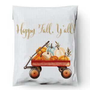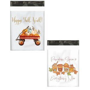 Celebrate the season with these festive fall poly mailers. Featuring vibrant orange and white designs, they're perfect for adding a touch of autumn to your shipments.