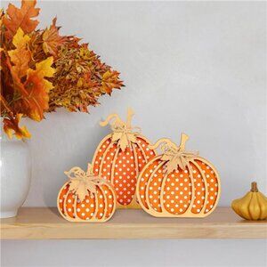Fall Pumpkin Decor, Thanksgiving Fall Decorations for Home, Wooden Pumpkin