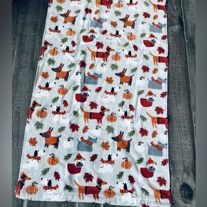 New and unused Casaba dogs pumpkins and leaves print gray orange and brown tone fall Halloween Farmhouse cotton dog and leaves print bathroom hand towel. Please ask if interested in bundling to save on shipping.