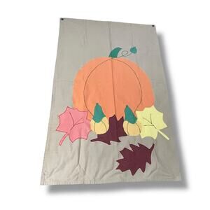 Fall Pumpkin Squash Leaves Flag Grommets House Outdoor Decor Vintage 54" x 35"W