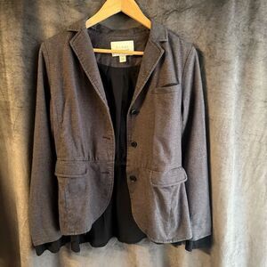 Fall Ruffle Cotton Blazer Size S Dark Office Layering Piece Hinge Designer