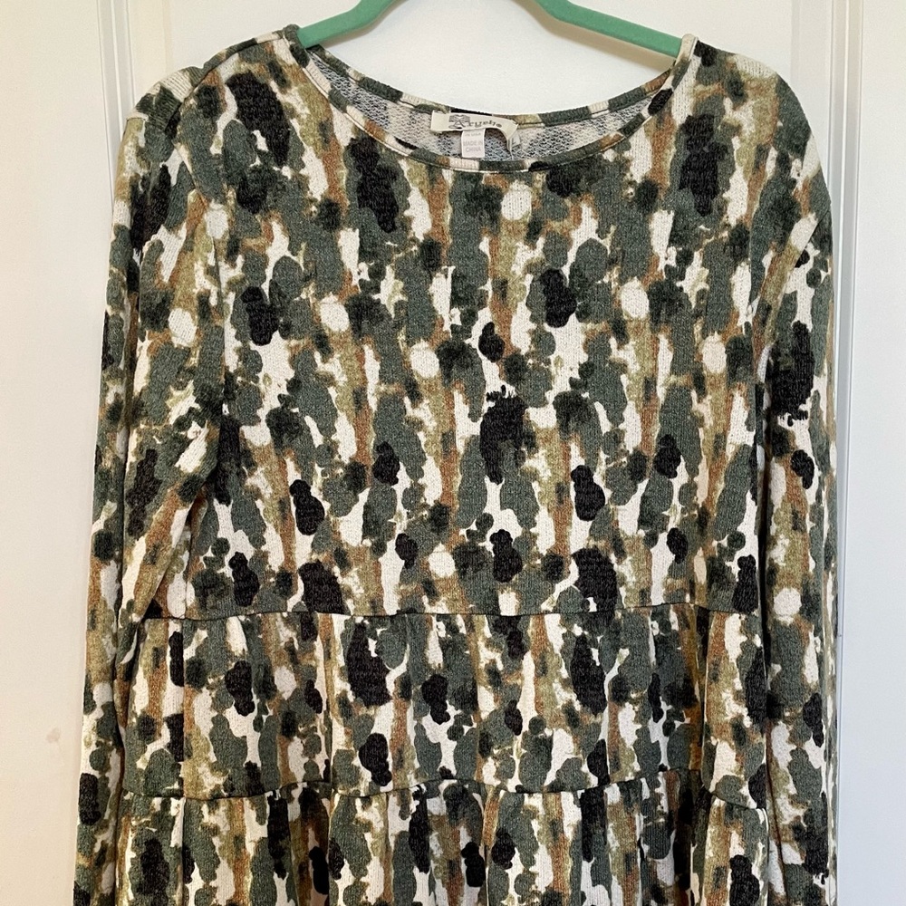 NWT cute and cozy fall sweater. Green, brown and grey coloring. Size Large