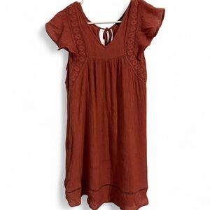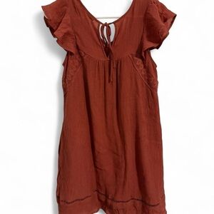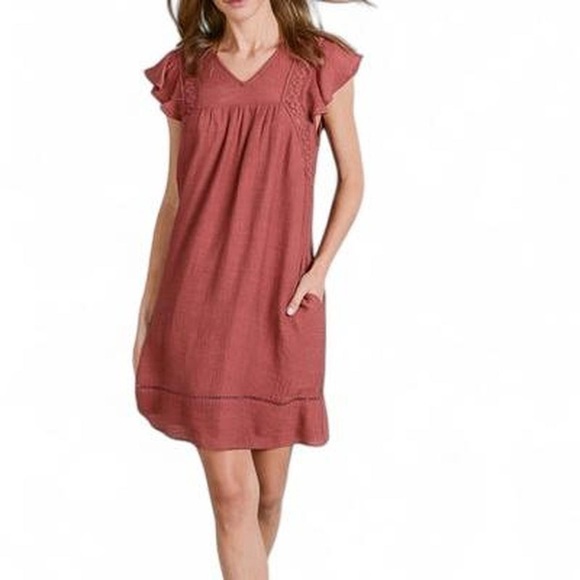 Chic mini dress with flutter sleeves with pockets. V-neckline and relaxed fit. Perfect for casual outings.