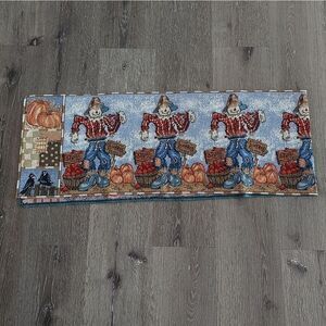 Fall Scarecrow Table Runner Tapestry Woven Autumn Farmhouse Country 70x13