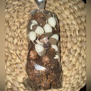 Add seasonal charm with fall scatters. Includes pinecones, pumpkins, egg corns and decorative accents in orange, brown, and white.
