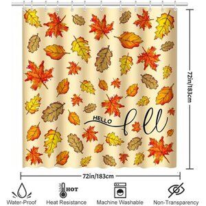 🧿MATERIAL: Fall shower curtain is made of 100% polyester fabric, which has good waterproof performance and can prevent water from spraying to other parts of the bathroom; The hem of the shower curtain is sewn with fine needles to make it hang better