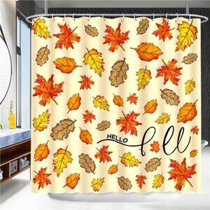 Fall shower curtains; orange waterproof shower curtain with 12 hooks, bathroom set for fall decorations.WATERPROOF DESIGN: Autumn shower curtain is made of polyester fabric, which allows water droplets
