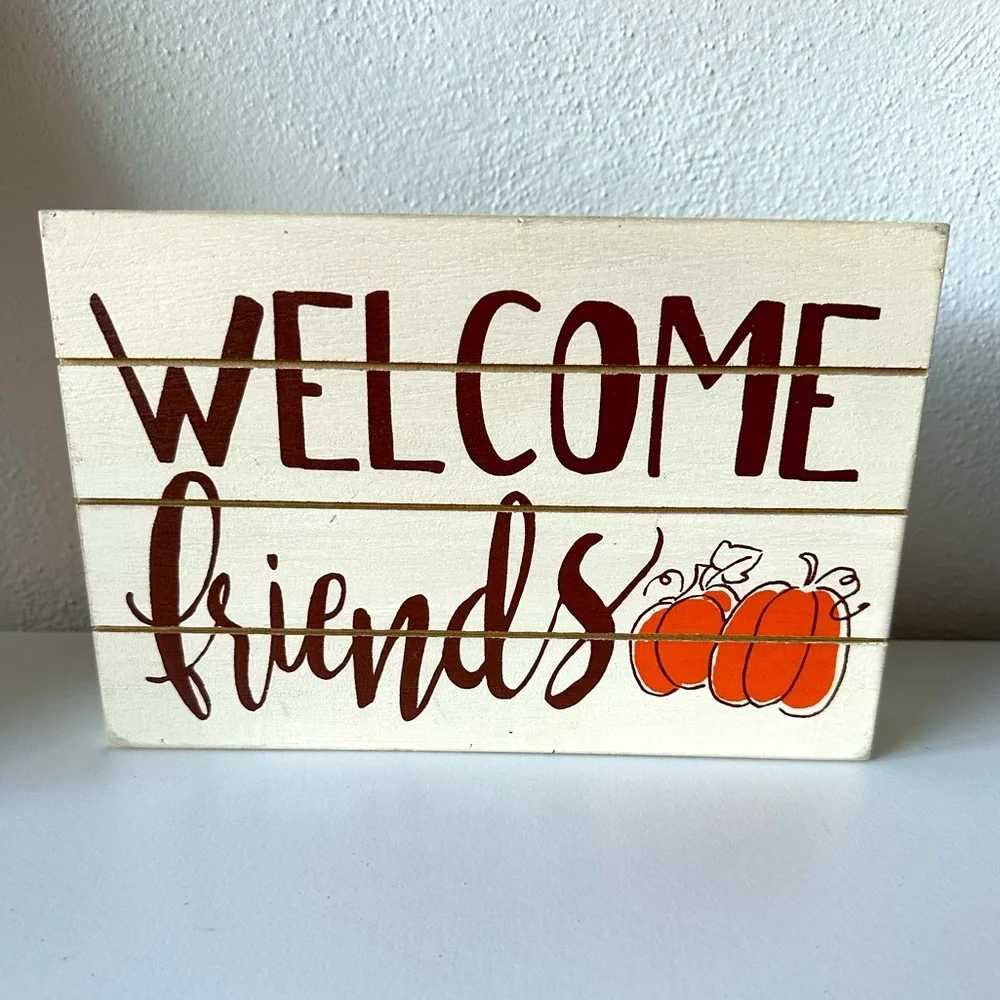 Welcome friends sign! 9”x6”. Small scuff on top that was on it when I purchased.