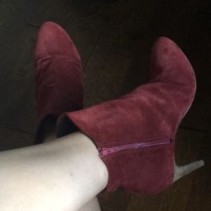Party bootie. Free people. Genuine Leather (sueded) High heel/stiletto tall ankle boots. Made in Portugal. Labeled size 11 European. Fits 10 US