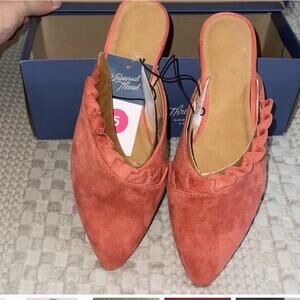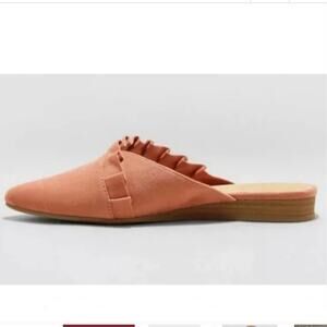 Suede like Ruffle mules flip casual flats rust color 5 NEW IN BOX