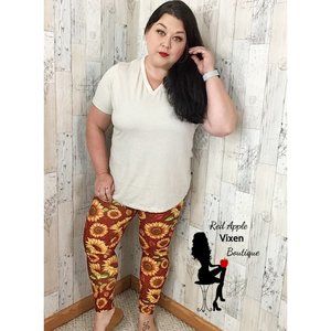 One of my favorite fall flowers are sunflowers, of course! These sunflower print leggings are brilliantly colored in burgundy, yellow, and greens.