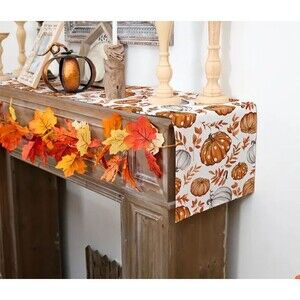 This listing is for a Fall Table Runner 13x72in Woven Polyester Pumpkins Leaves.