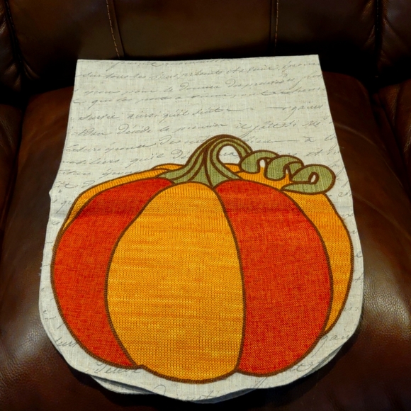 Lovely french script with pumpkins on both ends. Perfect for fall.
