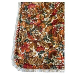 Fall Table Runner /Fabric Centerpiece Orange Red Leaves Apples Pears 32" x 17 "