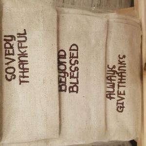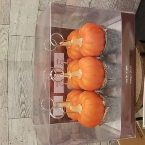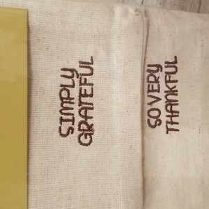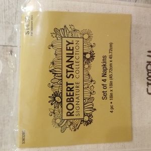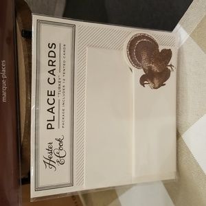 Everything you need to get your table ready for the holidays. This (7) item set includes a Robert Stanley inspired buffalo checked in hues of tan measuring 72"x13", a set of (4) Robert Stanley Signature Collection Napkins with the words Simply Grateful, So Very Thankful, Beyond Blessed and Always Give Thanks embroidered on the napkin. A package of Hester. & Cook Tented Turkey Placecards, which will sit perfectly in the pumpkin & galvenized table signs. The box has (6) pumpkins, nestled in their very own galvanized pail with a bed of seasoned moss. There are two (4) piece metal 5" food picks. one in copper and one in gold, each with the words blessed, thankful, gather and grateful in script. Lastly, what better way to pass the time waiting for dinner to be ready then with a game of Thanksgiving Bingo, this set includes (16) BINGO cards, (3) perforated calling cards, (4) perforated card markers & (1) instructional sheet. All NWT, Never Used, Pristine Condition. No rips, tears, stains or discoloration