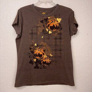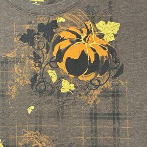 Fall Theme Shirt Womens 18W Measures As XL Brown Pumpkins Thanksgiving