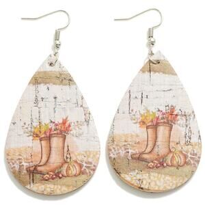 Fall Themed Cork Drop Earrings Leaves in Boots