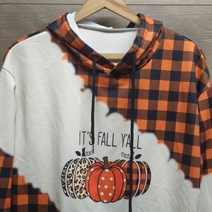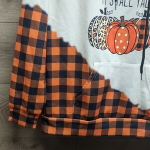 Fall Themed Pumpkin And Orange Plaid Pullover Hoodie Women's Size Small
