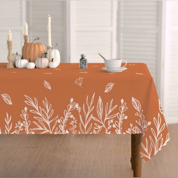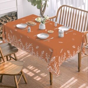 - Enhance your dining experience with this elegant fall tablecloth featuring a delicate leaf pattern. Perfect for kitchen dining, themed parties, holidays & special events.