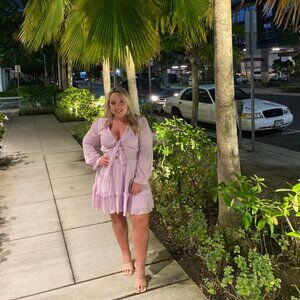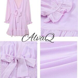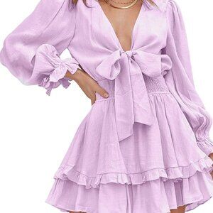 Features: Floral Print Dress, Sexy Deep V-Neck, Cut Out Tie Knot Front, Long Puff Sleeve, High Waist, A Line Silhouette, Short Knee Length, Casual, Bohemian, Flowy Beach Dress, Tiered Ruffle Hem, A-Line Sundress, Sweet Women Dress, Elastic High Waist.