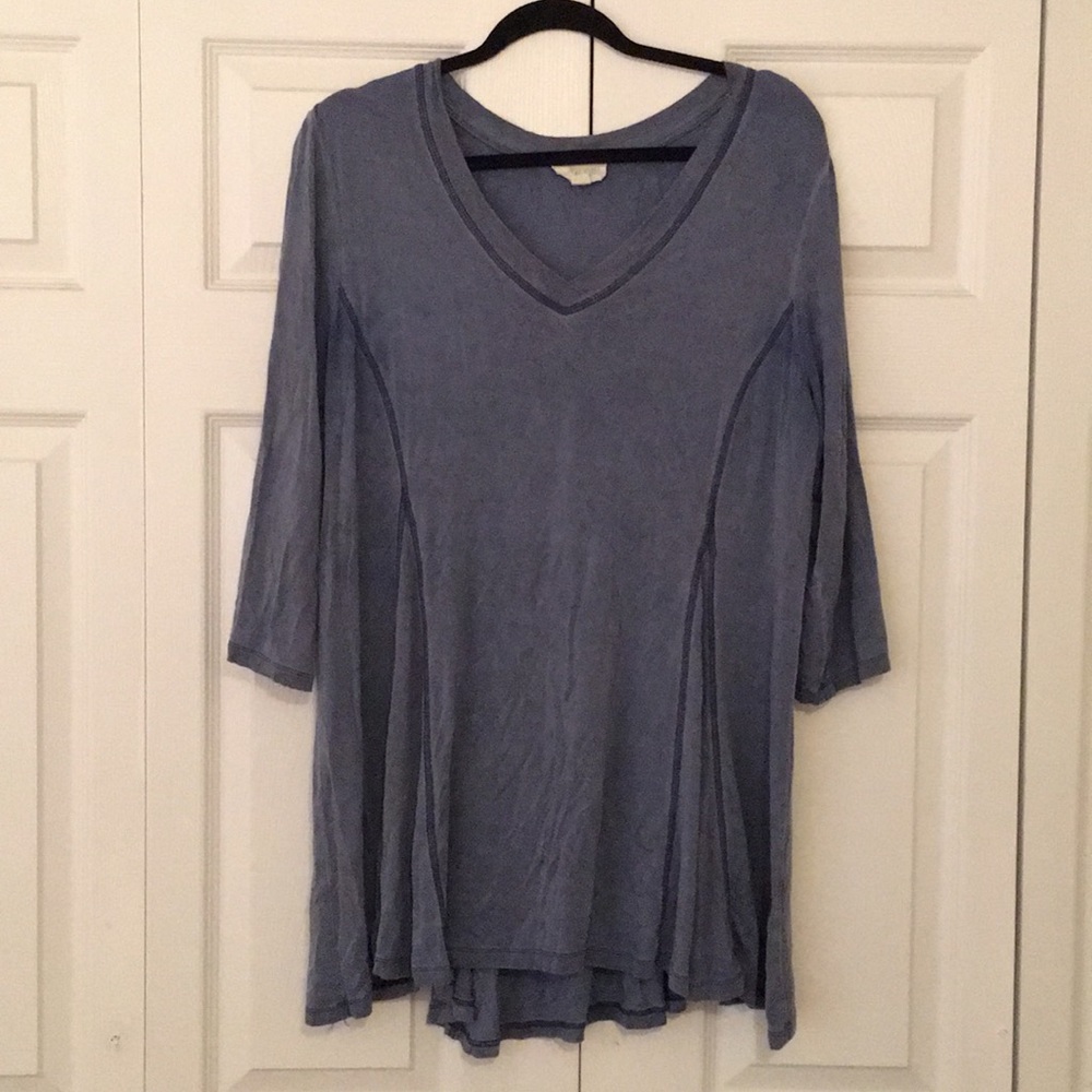Super fun and soft blue top is the perfect addition to your fall closet. Wear it with yoga pants and lounge or pair with jeans for an outing. Perfect top for this season!