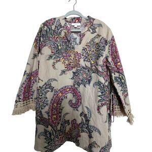 Fall Transitional Linen Paisley Boho Tunic XL Fringe Coastal Cowgirl Cottage