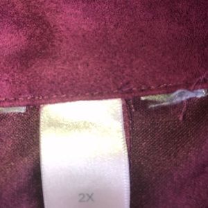 Burgundy vest with suede look and feel perfect for your fall outfits. Vest front is meant to have a drape to fit.