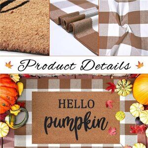 *(1) 30" x 17.5" Door Mat: Crafted from 100% pure coco coir, this welcome mat features the charming phrase "Hello Pumpkin." It provides a warm and inviting touch to your doorstep.