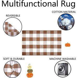 🧿Add a touch of rustic charm to any space with our handwoven, high-quality buffalo plaid rug; Made from cotton, that is soft and comfortable to the touch, it features an coffee and white checkered pattern and measures 43" x 28"