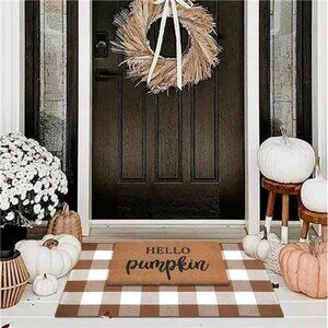 🧿Enhance your home's style and functionality with our ideal decor set; It includes a 100% coco coir welcome mat and coffee white plaid outdoor rug, perfect for upgrading your front porch; Elevate your fall front porch with these versatile door mats